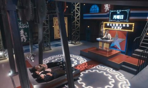 ドラマルール ・「ザ・アンカー」はクイズゲーム ・参加人数は3人。3人とも頭が少し浮いたベッドに横一列に寝かされ、身動きが取れないように縛られる ・3人の頭上を大きな「アンカー」が、振り子のように揺れ続ける ・その振り子の先は…